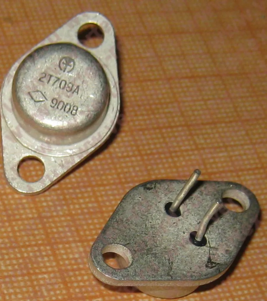 Транзистор 2Т709А кремниевый мезапланарный структуры р-п-р составной усилительный, применяется в усилителях и переключающих устройствах. Выпускаются в металлическом корпусе со стеклянными изоляторами и жесткими выводами. Масса не более 9 г.